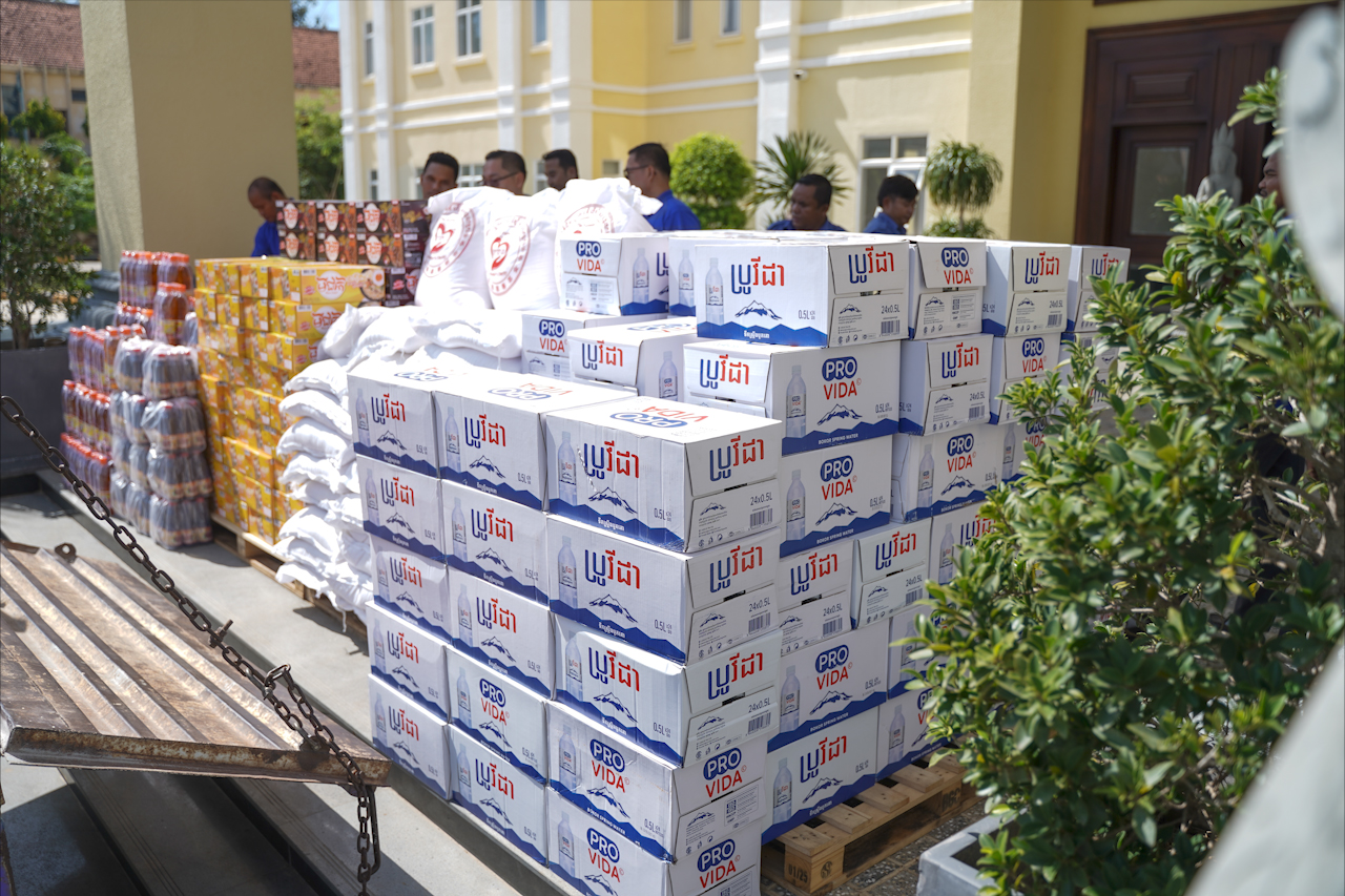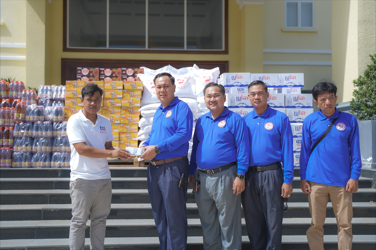 សូមបញ្ជាក់ថា គ្រឿងឧបភោគបរិភោគ និងថវិកា ឧបត្ថម្ភទាំងអស់រួមមាន៖ អង្គរ១តោន, មីជាតិ១០០កេស, ទឹកត្រី ១០០យួរ, ទឹកស៊ីអ៊ីវ ១០០យួរ, ទឹកសុទ្ធ ១០០កេស និងថវិកាចំនួន ៥លាន រៀល ៕